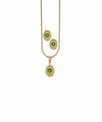 • Conjunto de Brincos e Gargantilha Adversidade Folheados a ouro com resina