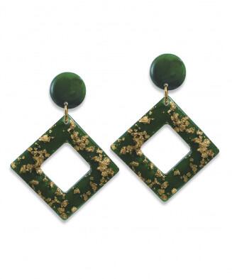 • Brincos Rústico em resina com detalhes folheados a ouro