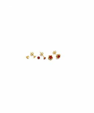 • Conjunto com 3 pares de Brincos Valentina Folheados a ouro com strass