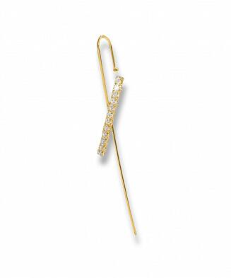 • Brinco Piercing Fake Transversal Folheado a ouro com zircônia