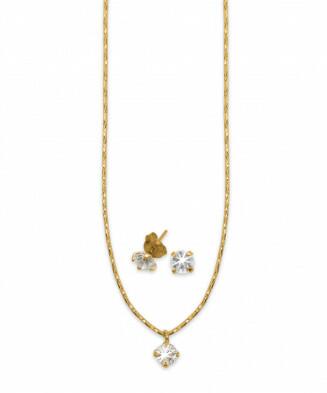 • Conjunto de Brincos e Gargantilha Ponto de Luz Folheados a ouro com strass