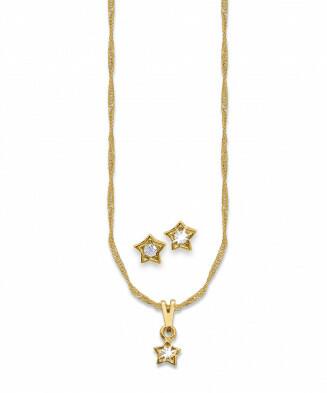 • Conjunto de Brincos e Gargantilha Estrelas Folheados a ouro com zircônia