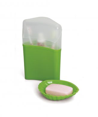 • Conjunto porta-escova, pasta e saboneteira em plástico