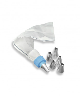 • Jogo confeiteiro com decorador em plástico e 6 bicos em aço inox