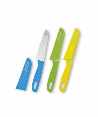 • Faca em aço inox para legumes com cabo e protetor de lâmina em plástico