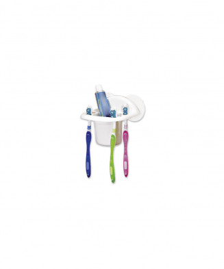 • Porta-escovas e pasta em plástico com ventosa