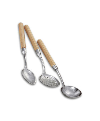 Jogo 3 talheres em alumínio fundido com cabo em madeira