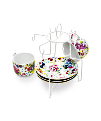 Porta-xícaras em arame com pintura em epóxi para 6 xícaras e 6 pires