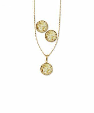 Conjunto de Brincos e Gargantilha Contagiante Folheados a ouro com resina