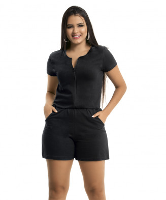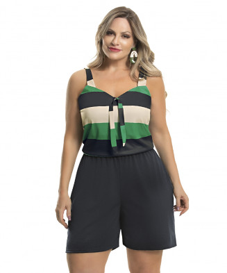 Macaquinho em helanca e jersey acetinado