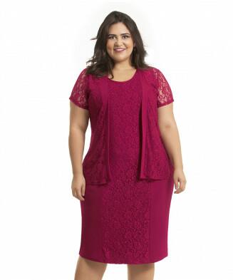 Conjunto 2 peças (Casaco e vestido em helanca e renda)