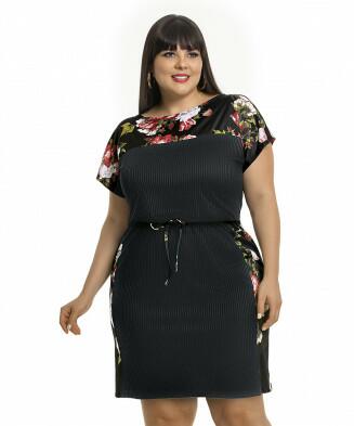 Vestido em malha ribana e jersey acetinado