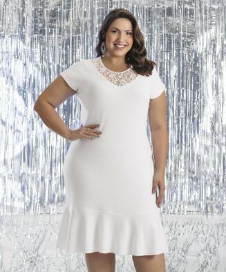 Vestido em malha crepe encorpada com textura e renda