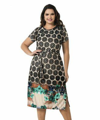 Conjunto 2 peças (Casaco e vestido em helanca e renda)