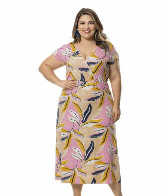 Vestido com transpasse em liganette de poliéster