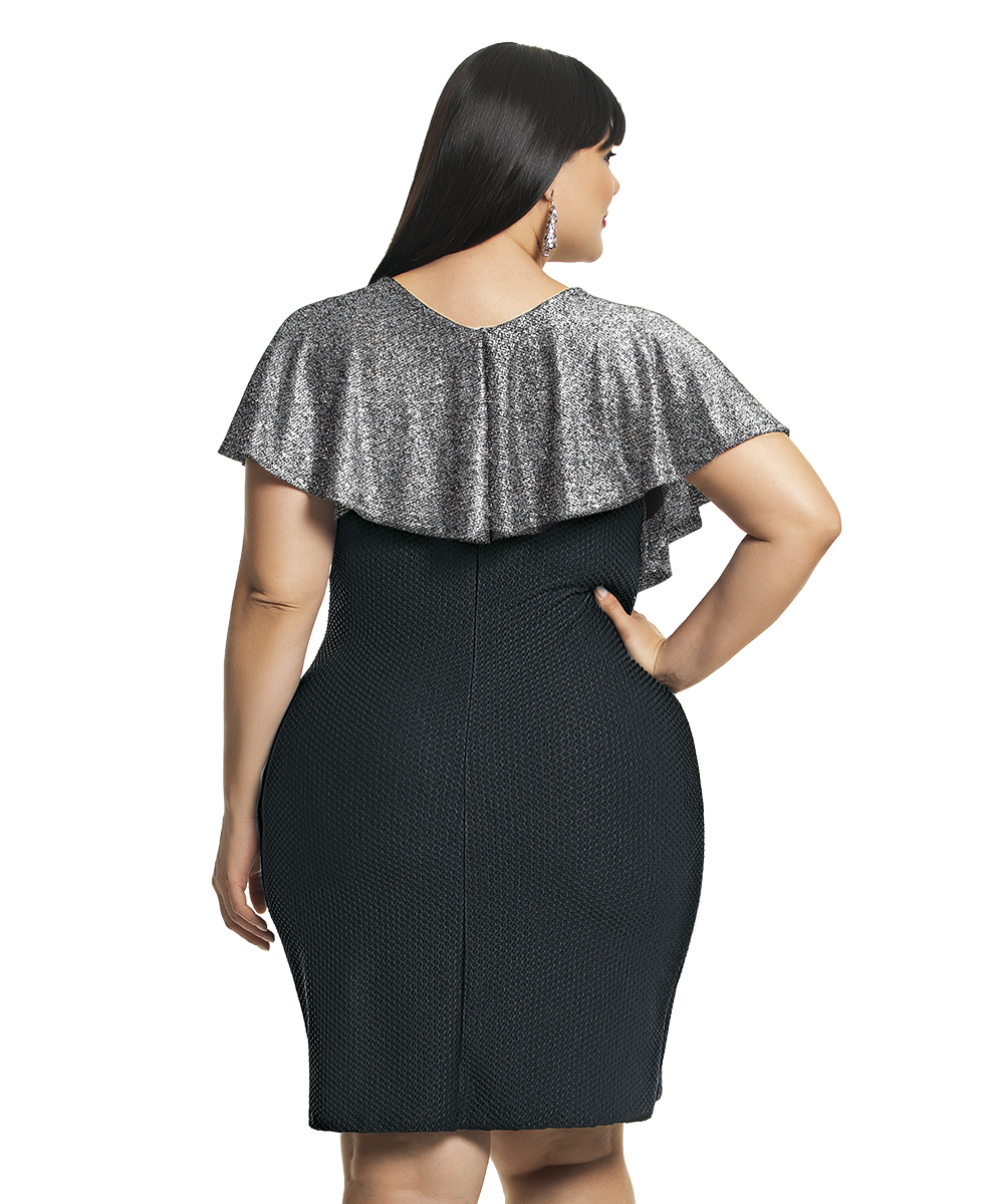 Vestido em malha com brilho e elastano e malha piquet com elastano