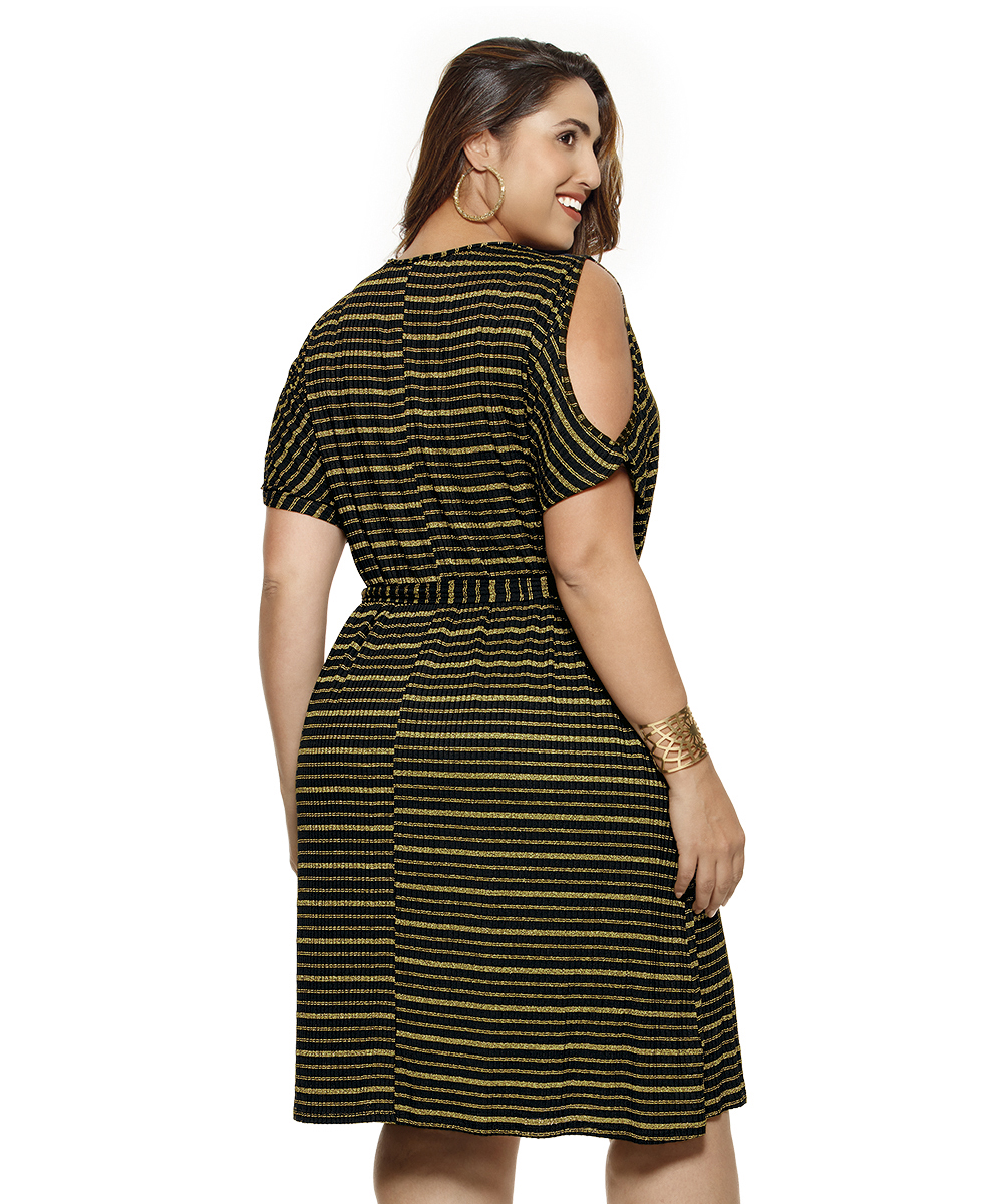 Vestido em malha de viscose com fios dourados