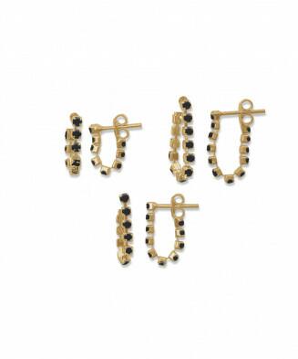 Conjunto com 3 pares de Brincos Casual Folheados a ouro com strass